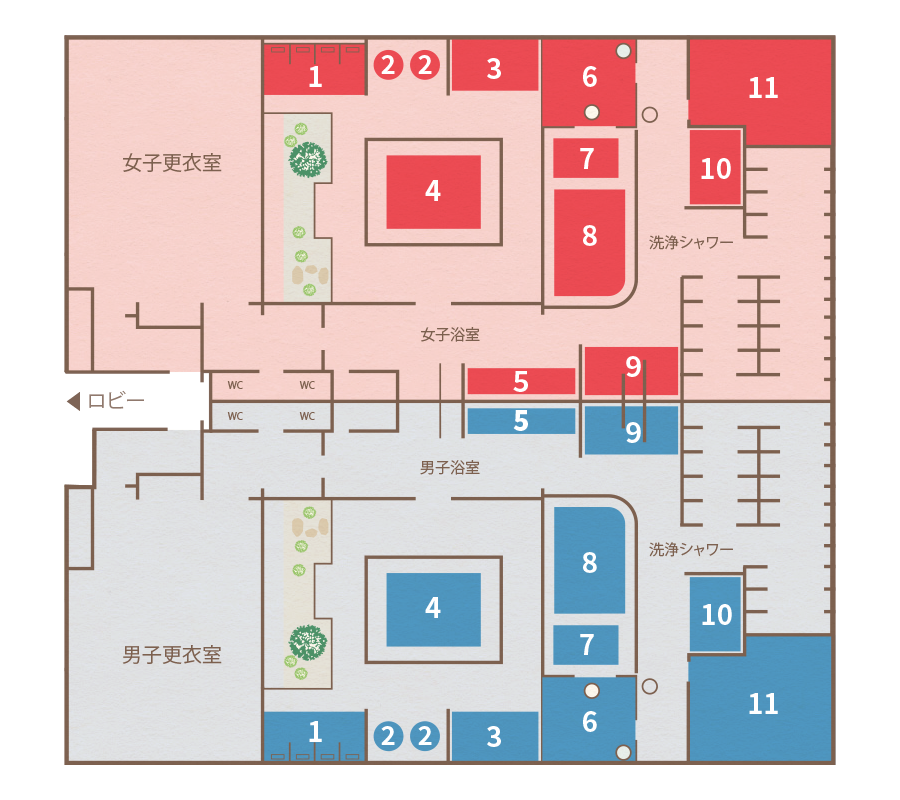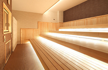 ❹「休憩ゾーン」やテラスでの外気浴で、ゆっくりと身体を休めます。