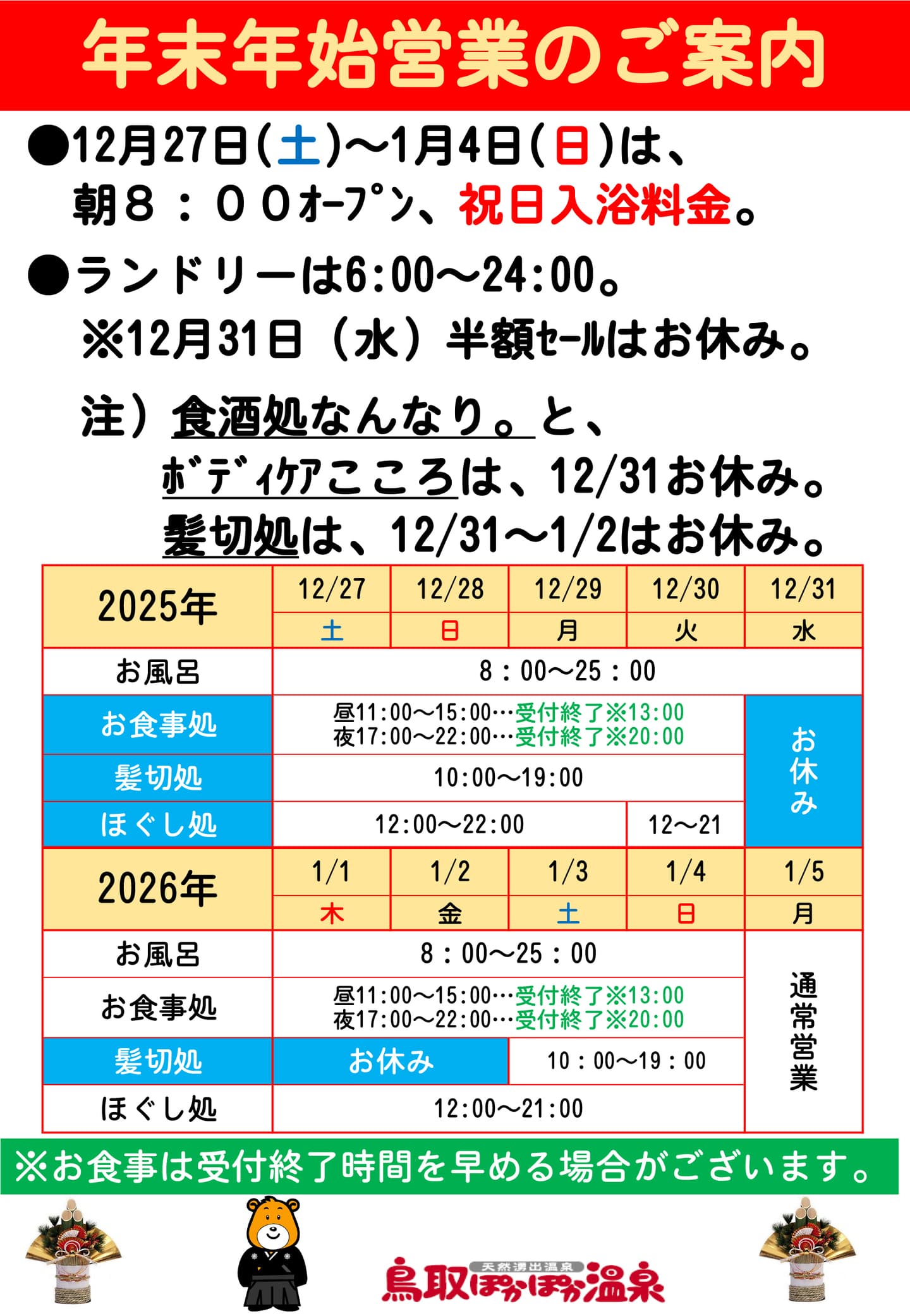 お風呂は年末年始休まず営業。